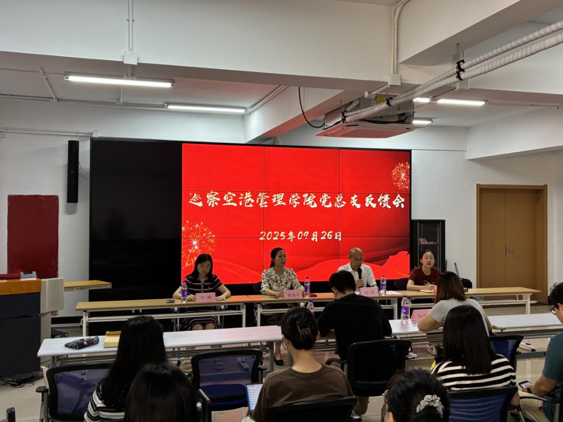 2025年9月26日星期五下午1点30分,学院党委第一巡察组巡察空港管理学院党总支情况反馈会在浦东校区睿思楼211举行。学院党委第一巡察组组长曹维平,副组长宁耕,组员陆叶林、杨坤出席了会议,空港管理学院党总支全体党员参会。空港管理学院党总支书记、院长孙军主持会议。